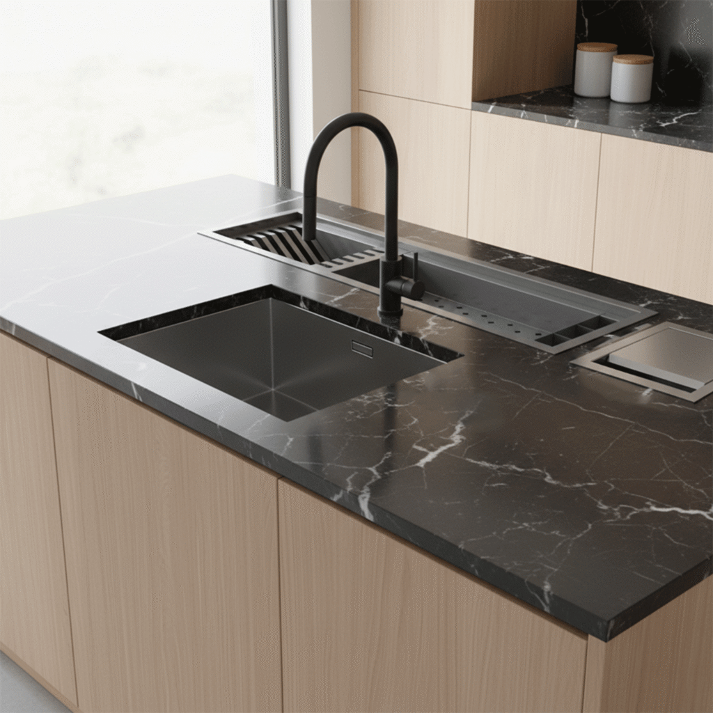 Escorredor gourmet 61 + Cuba 35×35 + Lixeira 4L
